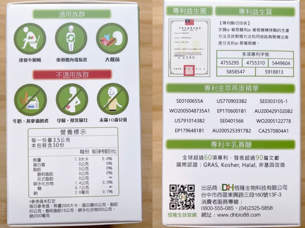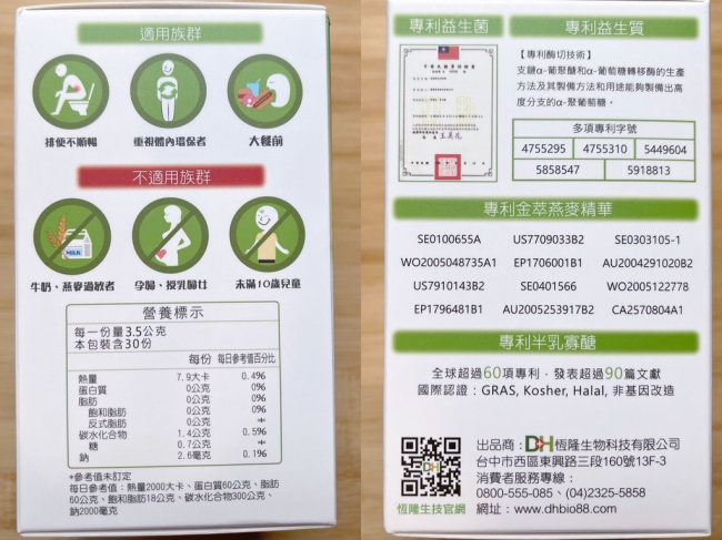 注意事項:牛奶或燕麥過敏、孕婦或授乳婦女、未滿10歲兒童不適用