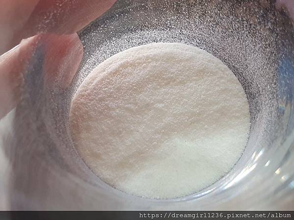 是細緻的粉末狀,因含有牛奶、魚類製品,