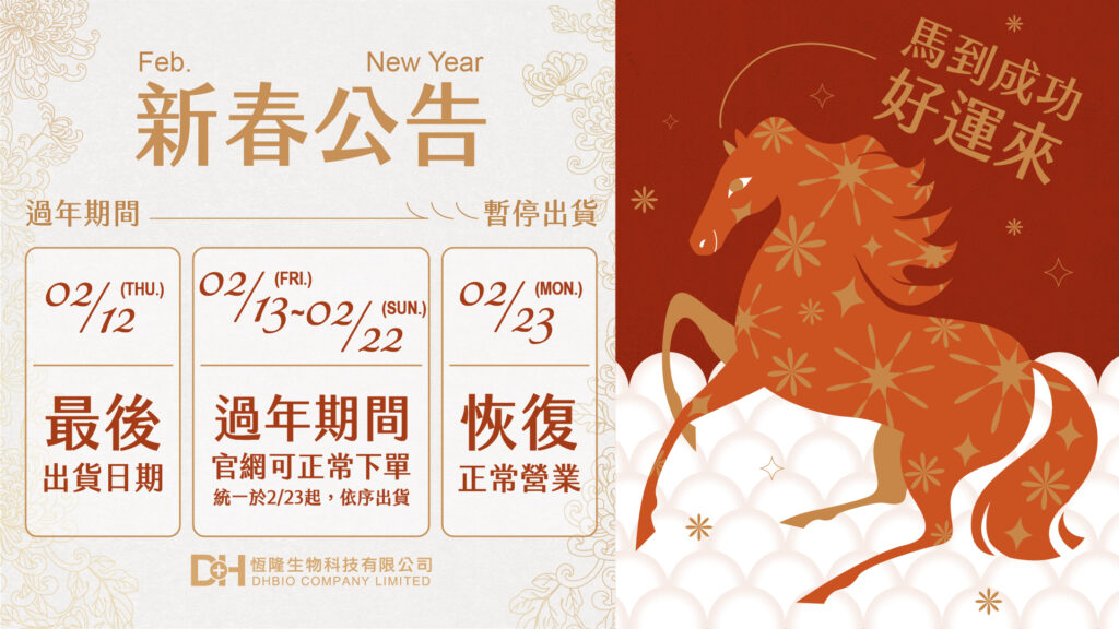 過年期間暫停出貨 發佈留言 / 最新消息 / dhbio 為配合過年假期,我們將於 於 2/13(五)至 2/22(日)暫停出貨,過年補給不中斷,歡迎至 全台各大實體藥局 選購,健康即刻到位! 過年期間暫停出貨 閱讀全文 »